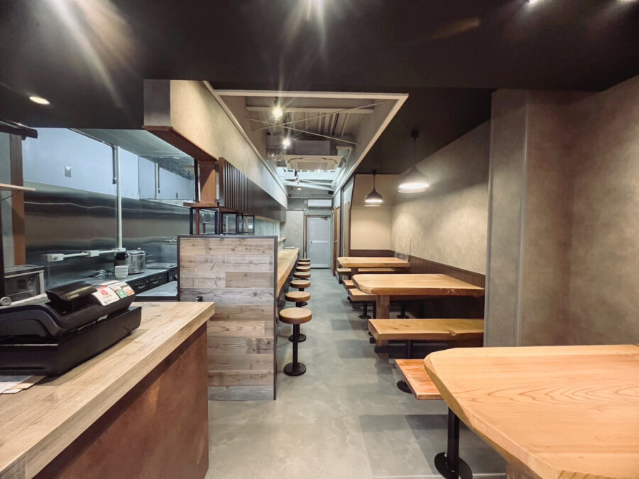 長森あるラーメン店の店舗改装に伴う、厨房設備施工一式を担当いたしました。客席だけでなく、厨房も一新してリニューアル。